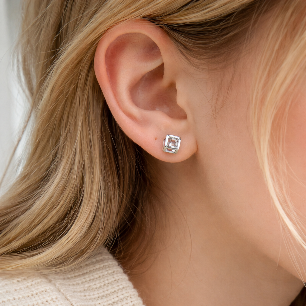 A tiny cube with clean shine. Cube is a minimal stud earring designed for everyday wear — small, modern, and easy to style.